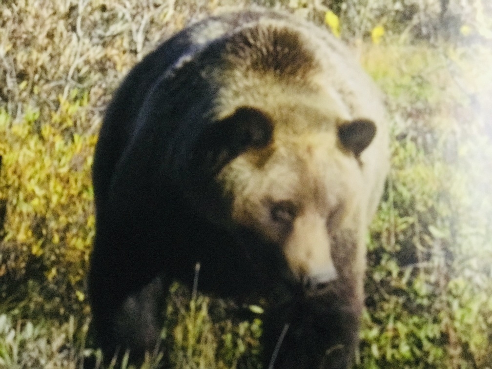 Suddenly, the guide announced to be watchful as he spotted some grizzly bears, through some trees nearby. Yes, a family of bears could be seen from a distance and busy eating from the field. Our guide said they were eating berries grown in abundance during this season. Suddenly the voice of the guide boomed. “See what is moving towards our vehicle. Take pictures but maintain absolute silence.”